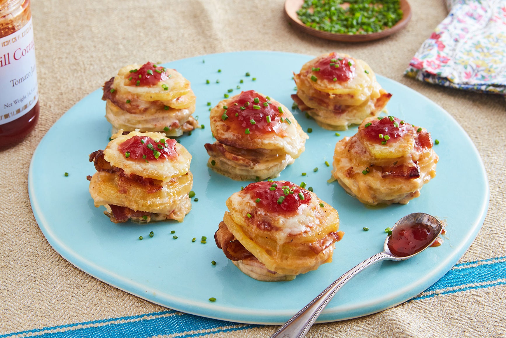 Mini Potato Gratin Stacks with Bacon and Tomato Jam