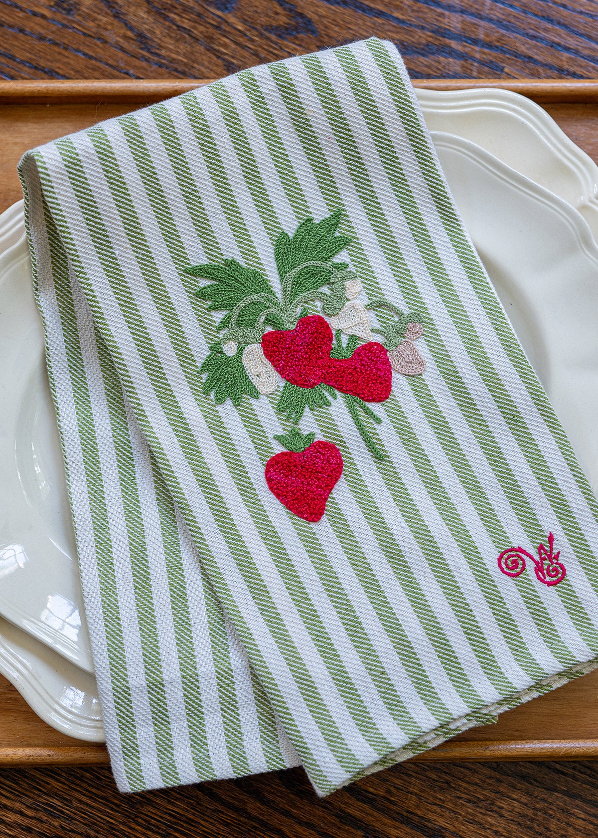 Crafted from fine Bussati linen and delicately embroidered, this limited-edition tea towel brings refined charm to any kitchen.