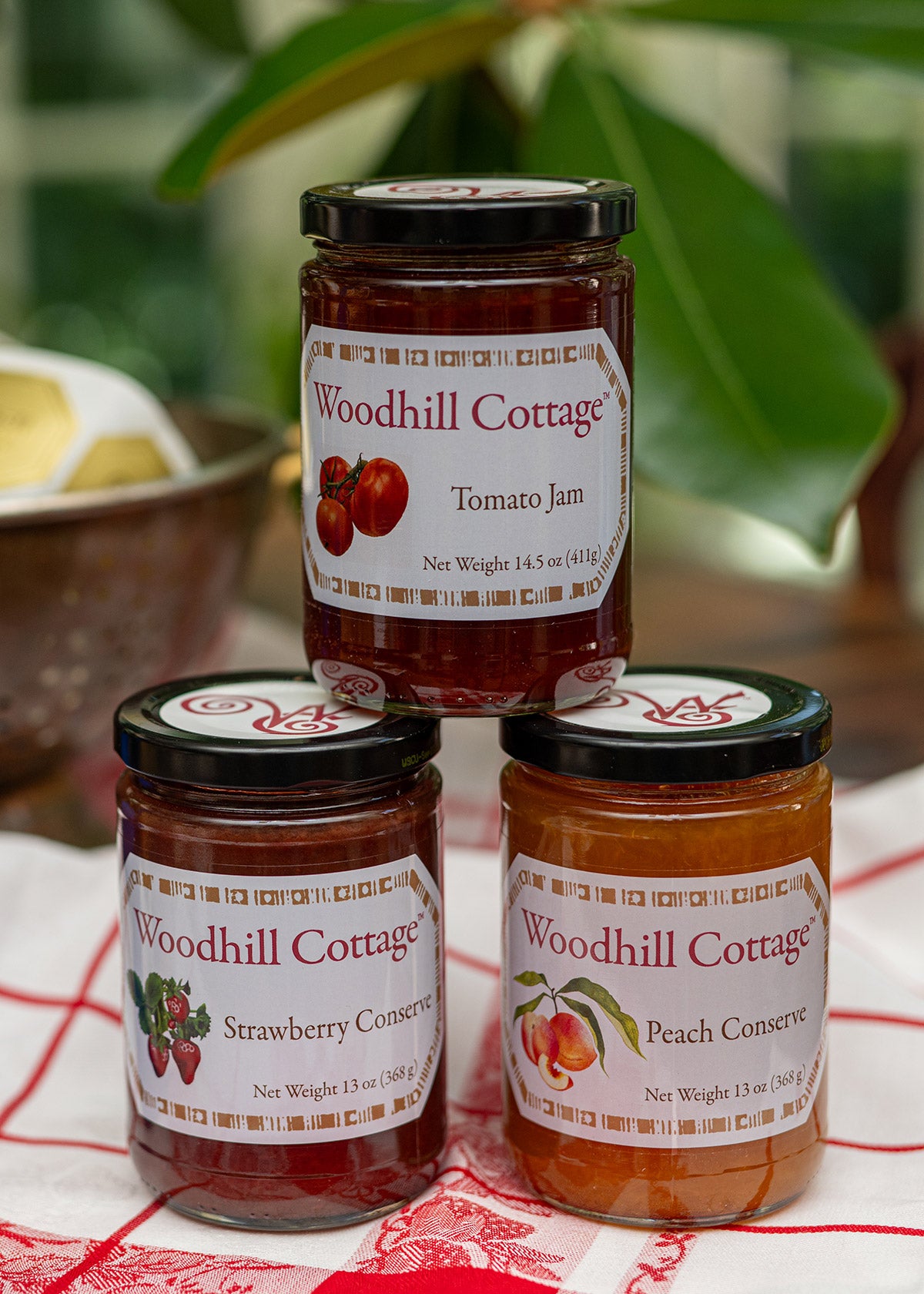 A trio of our best-selling Southern flavors, Strawberry Conserve, Peach Conserve, and Tomato Jam, beautifully packaged for effortless gifting.